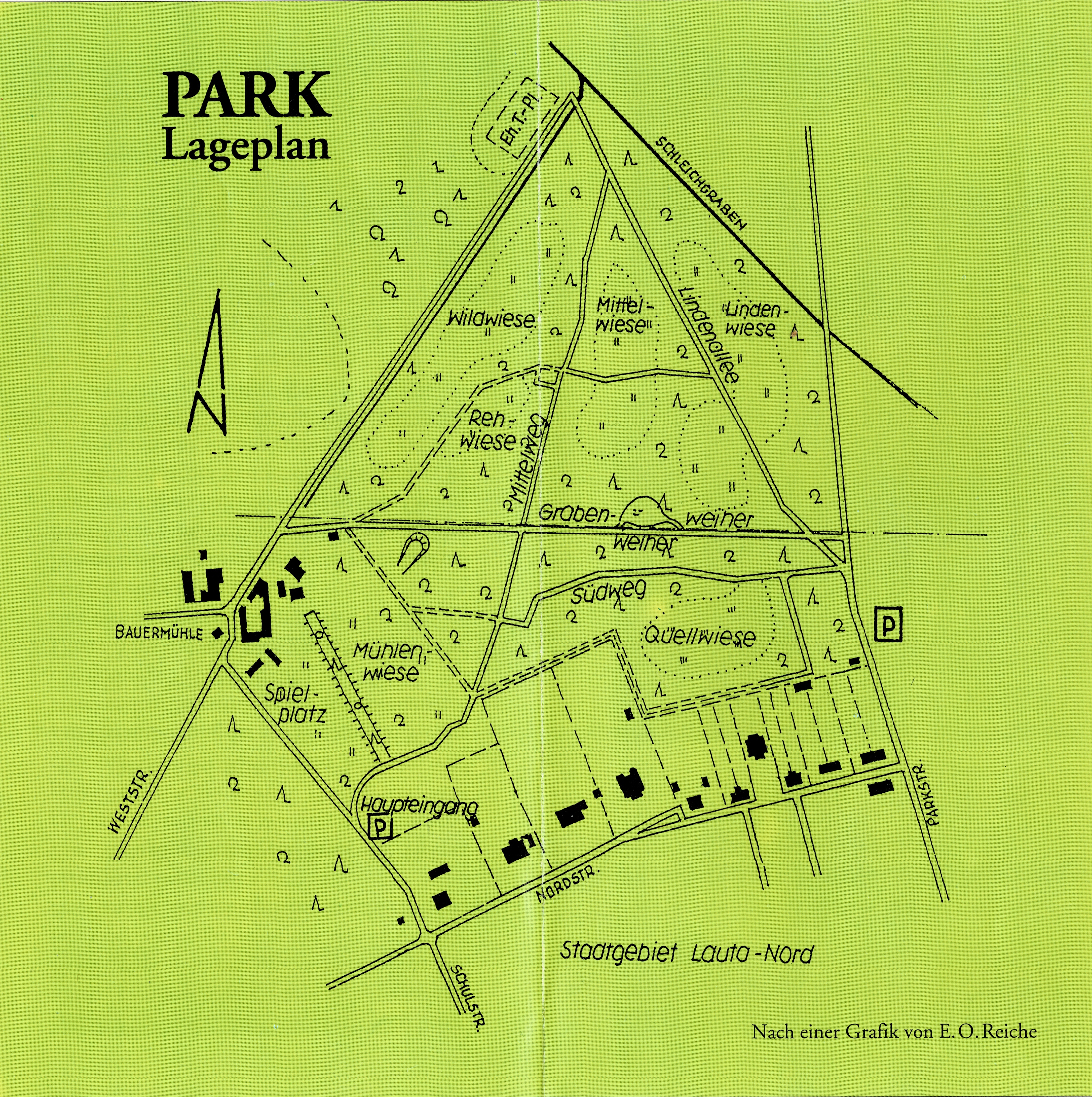 Unter Bürgermeister Rainer Rischer wurde ein Faltblatt zum „Stadtpark Lauta. Kleinod der Landschaft und Erholungsstätte. Kleiner Führer durch den Park“ herausgegeben. Beschrieben werden darin die Entstehung des Parkes sowie die in ihm zu findenden Bäume und Sträucher, aber auch die Vogelwelt. Leider wurde das von der Stadt Lauta in Verbindung mit der Schutzgemeinschaft Deutscher Wald e.V. Kreisverband Hoyerswerda hergestellte informative achtseitige-Blatt nicht neu aufgelegt.